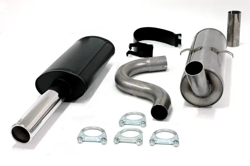 The rear muffler in the system kit is typically painted black, and other parts are often painted silver over the weld seams and other exposed areas. The tailpipes are always made from polished stainless steel material. The expected lifespan of products in ALU Quality is 3-6 years, although there can be significant variations.